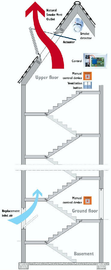 The functionof SHEVS is deriving smoke and heat from the fire, and inhibiting the combustionof building materials. By means of SHEVS, windows can quickly exhaust smoke andheat, maintain visibility of escape and rescue channel enough, firefighters canquickly judge the fire situation, take corresponding measures, so as to speedup the process to avoid the spread of fire extinguishing, protect people lifesafety, reduce property loss.